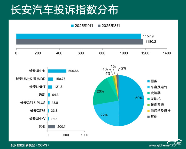 汽车质量投诉点评:长安汽车本月投诉指数变化不大,投诉围绕服务、车身及电气、变速器三大层面展开,其中服务层面占比高达50%,主要变现为车机系统长期不升级,设计长安UNI系列等多款车型。其次,变速器问题也是长安车主投诉的焦点,这源自其自研的双离合变速器存在缺陷,顿挫无法换挡引发车主不满。