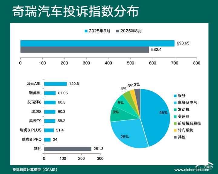 第五名:奇瑞汽车 投诉指数 698.65